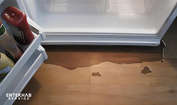 خرابی شیر برقی، اتصالات شل یا نقص در یخساز میتواند باعث نشت آب شود. این آب معمولاً به کف دستگاه نفوذ کرده و از زیر یخچال خارج میشود.